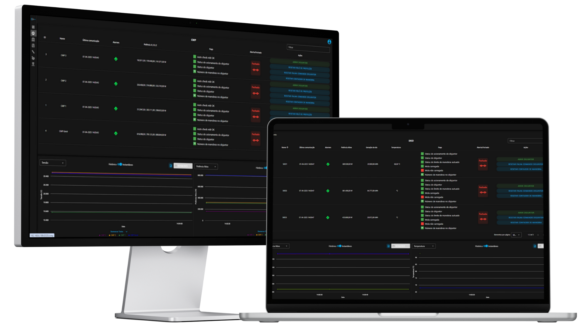 Nossa solução conta com um sistema de acionamento integrado, garantindo rearmes remotos precisos e confiáveis. Além disso, oferece versatilidade para integração total com os principais sistemas SCADA do mercado, centralizando a operação e otimizando a gestão da usina.